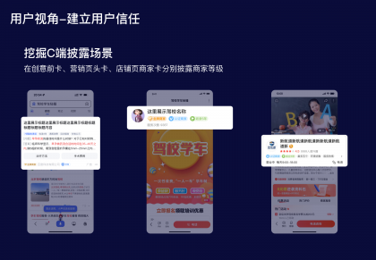 增加C端披露:通過(guò)挖掘C端披露場(chǎng)景,幫助用戶提高優(yōu)質(zhì)商家獲取效率
