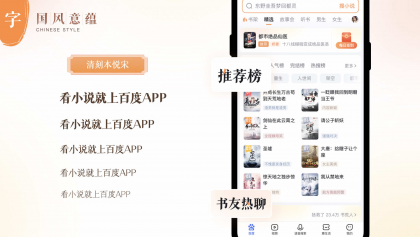 宋朝詩人汪洙在《神童詩》中有這樣的千古名句:“萬般皆下品,唯有讀書高?!弊x書自古以來是成為高雅風(fēng)韻的文人士大夫的必經(jīng)之路。由此可見,自古以來讀書和雅致之間就結(jié)下了不解之緣,閱讀與國風(fēng)雅頌的風(fēng)格也就找到了完美的交匯點(diǎn),因此小說設(shè)計(jì)團(tuán)隊(duì)在確定設(shè)計(jì)風(fēng)格的探尋中,選擇了國風(fēng)的風(fēng)格來體現(xiàn)百度小說的人文感的設(shè)計(jì)。