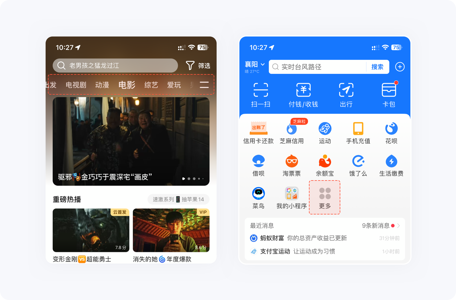 如果大量的選項(xiàng)無(wú)法減少,可將重要選項(xiàng)靠前,將其他的隱藏起來(lái),方便用戶決策及降低失誤操作的概率。例如騰訊視頻頂部分類(lèi)后面的更多圖標(biāo)、支付寶首頁(yè)金剛區(qū)的更多入口,點(diǎn)開(kāi)后就會(huì)發(fā)現(xiàn),里面隱藏了非常多的功能,這樣做能減少用戶認(rèn)知負(fù)荷,提高信息篩選的效率。