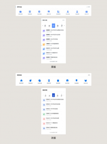 在快速入口和日程模塊中,都有使用裝飾圖標,顯然大家也能理解他們對于目前的語境來講還是細節(jié)過多了,所以需要做一些調(diào)整,讓它們簡化。