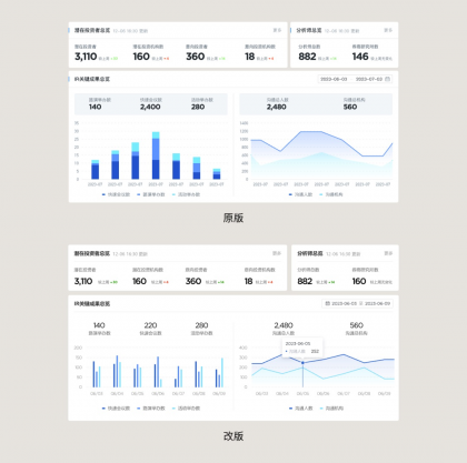 但重要不代表需要過度傾注和堆疊視覺元素,過度的設計會讓界面看起來有 “飛機” 敢,不僅不真實的印象產(chǎn)生了,還會顯得業(yè)余不夠自信。同時任何項目中表盤頁過度設計都會對整個項目造成負擔,后續(xù)的頁面要怎么設計才能不和它產(chǎn)生隔閡,保持一致性。