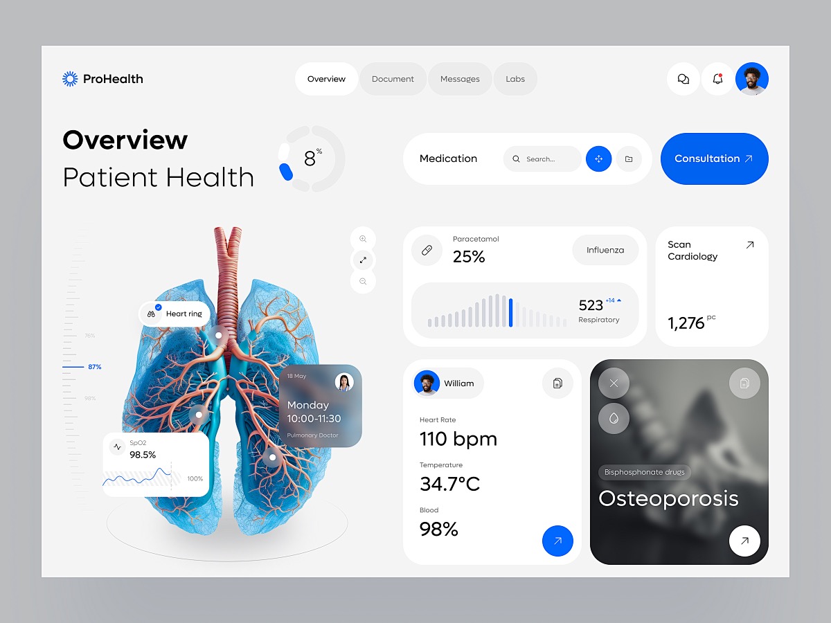 針對患者的醫(yī)療 UI 設(shè)計,功能重點在于信息查詢與服務(wù)獲取。患者需要能夠方便地查詢自己的就診記錄、檢查報告、費用明細等信息,因此在患者端的醫(yī)療 APP 或醫(yī)院官網(wǎng)界面上,應(yīng)設(shè)置專門的信息查詢?nèi)肟?,并以清晰易懂的方式呈現(xiàn)數(shù)據(jù)。同時,提供在線預(yù)約掛號、繳費、藥品配送等服務(wù)功能,實現(xiàn)就醫(yī)流程的線上化,減少患者排隊等待的時間。此外,一些健康管理功能也受到患者的歡迎,如個人健康檔案管理、疾病預(yù)防知識推送、康復(fù)訓(xùn)練指導(dǎo)等。