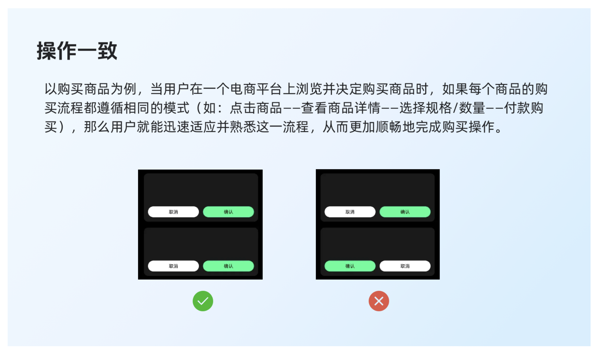 “一致性”作為規(guī)則或手段,服務于提升用戶體驗的原則。規(guī)則與原則一致時,促進業(yè)務共識與用戶價值;沖突時,原則優(yōu)先。用戶體驗原則指導下的一致性,要超越表面控件統(tǒng)一,更在于產(chǎn)品決策與價值取向的一致。必要時,為更好的用戶體驗,可在規(guī)則上讓步以實現(xiàn)原則統(tǒng)一。打破規(guī)則需慎重權衡,確保用戶便利足以彌補理解成本,需長期全局考量。規(guī)則非僵化教條,而是引導我們謹慎創(chuàng)新的框架。