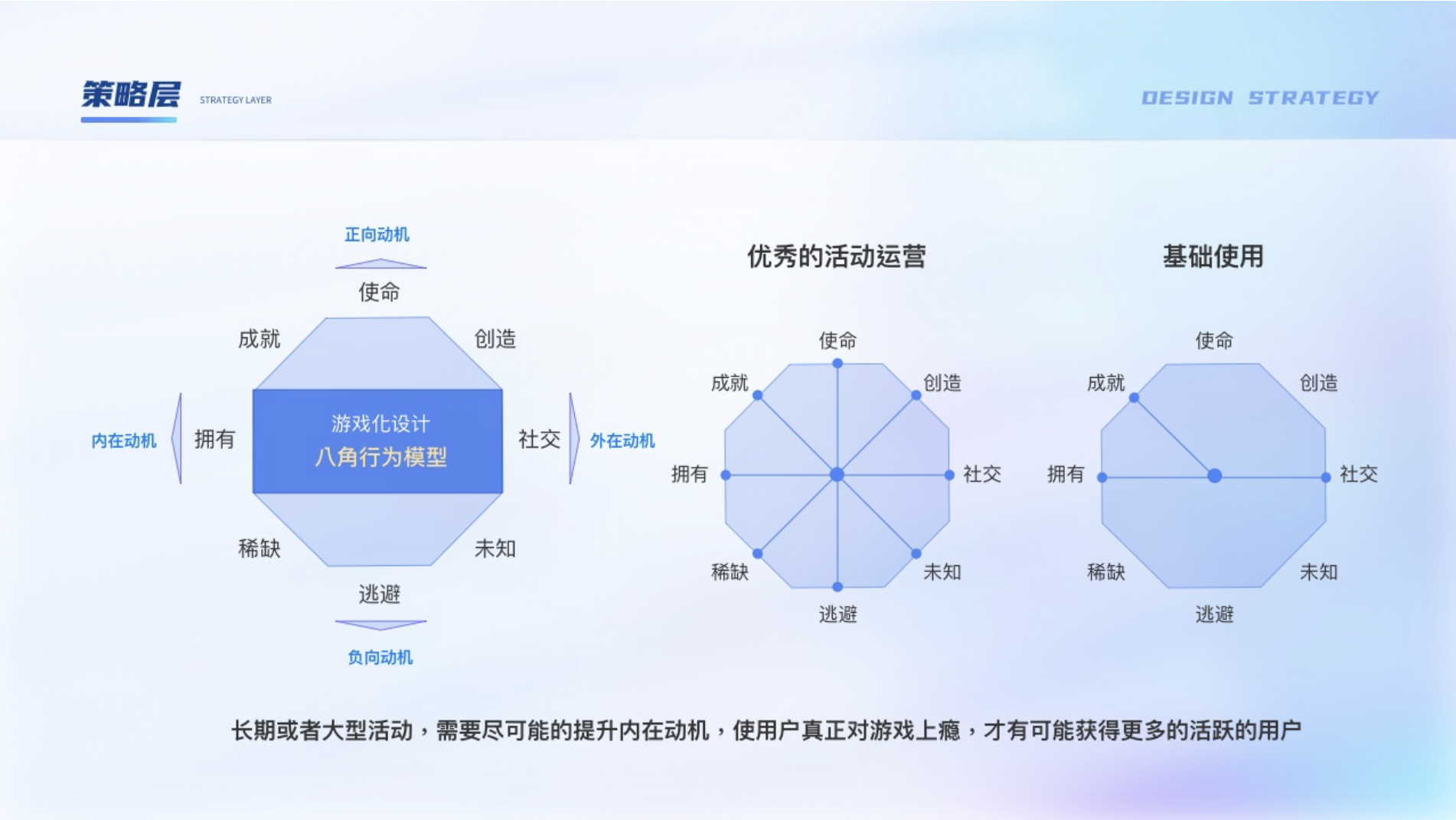 由于游戲本身對(duì)用戶就有一種天然的吸引力,加上可以很好的與運(yùn)營(yíng)活動(dòng)結(jié)合打造沉浸式體驗(yàn),越來越多活動(dòng)都是與游戲結(jié)合來達(dá)到活動(dòng)目標(biāo),也叫運(yùn)營(yíng)的游戲化。核心宗旨是“以人為本”的設(shè)計(jì)理念,并不是以功能為中心,在設(shè)計(jì)時(shí)可以使用游戲化設(shè)計(jì)八角模型。