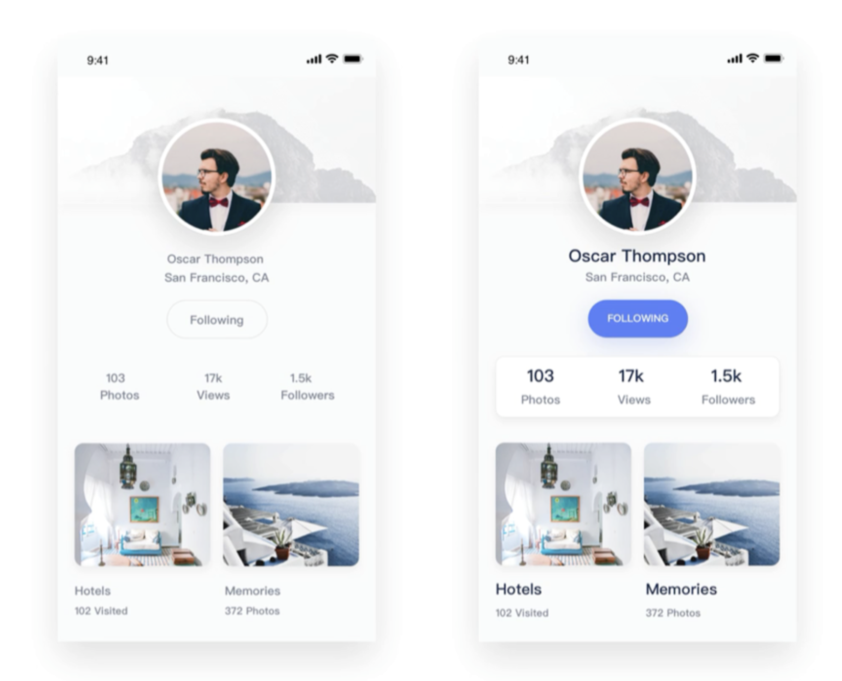 - 連續(xù)性:視覺(jué)偏向感知連續(xù)形式,元素共享明確界限區(qū)域則分一組,設(shè)計(jì)中常用卡片式組合相關(guān)元素。