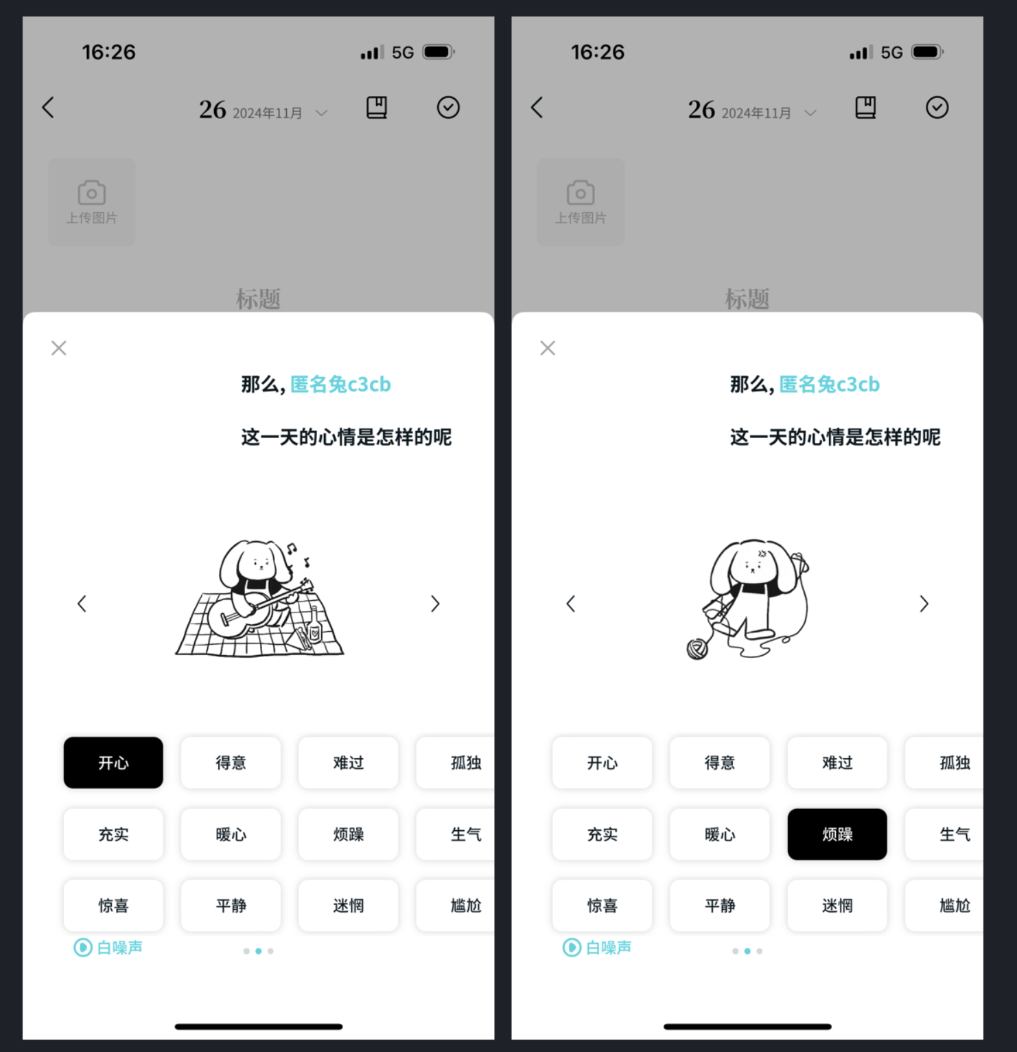 記日記時選 “心情標(biāo)簽”,是很多人記錄生活的習(xí)慣,但常規(guī)設(shè)計要么是單調(diào)的文字(“開心”“難過”),要么是簡單的表情符號,總少點代入感。