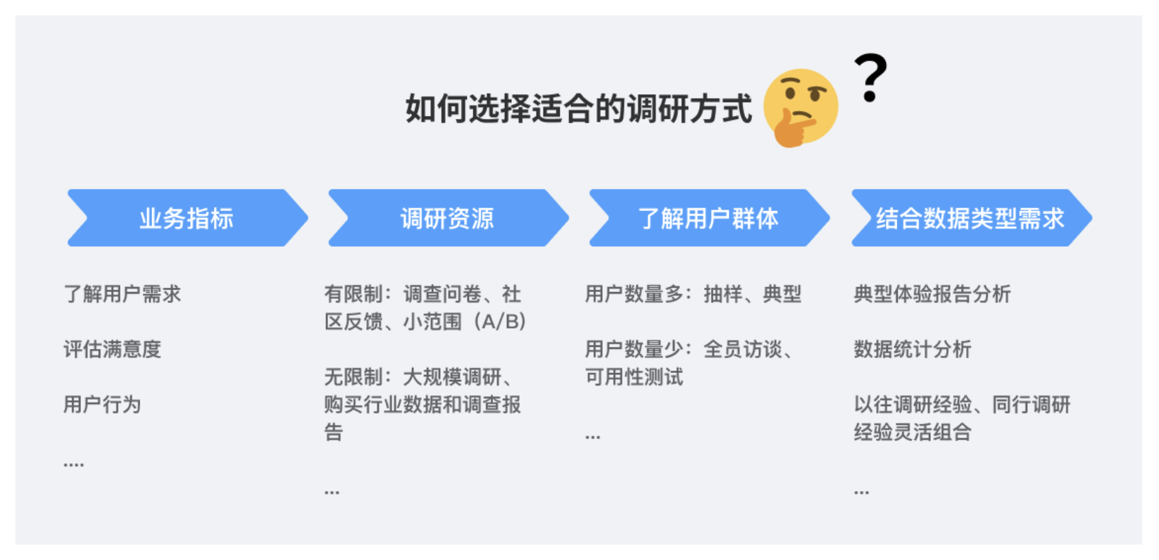 用戶分析的核心是 “用合適的方法,在有限資源內(nèi)找關(guān)鍵信息”,常見方法及適用場景如下:
