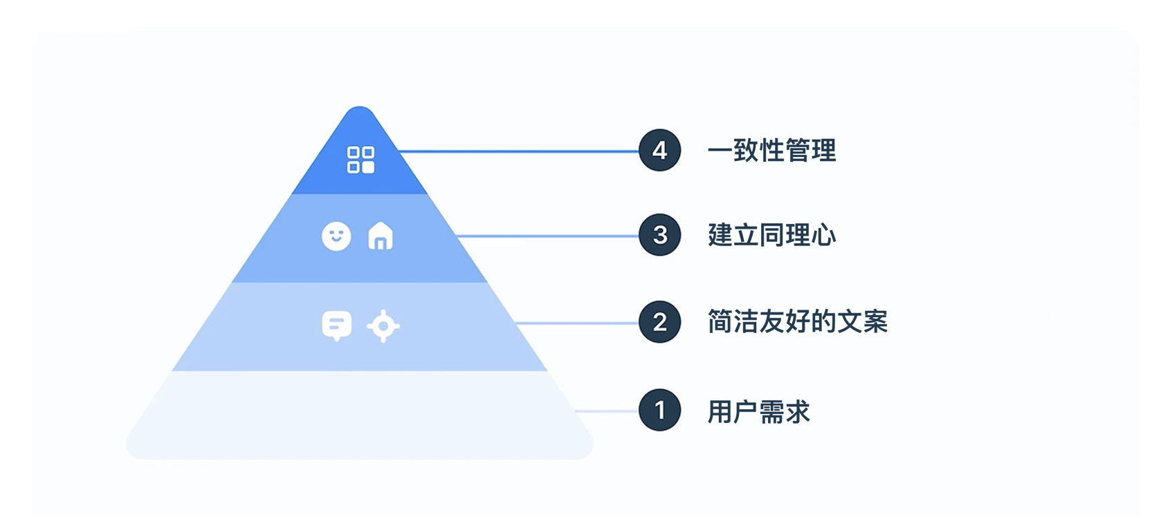 好的 UX 文案需要融合五個(gè)核心要素,且有明確的優(yōu)先級(jí)層次,就像搭建一座房子,基礎(chǔ)不牢,再華麗的裝飾也沒(méi)用: