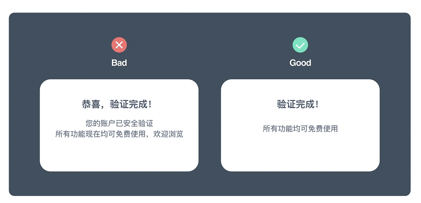 - 減字?jǐn)?shù):去掉不必要的形容詞和解釋。比如注冊(cè)成功提示,“恭喜您!注冊(cè)流程已全部完成,您的賬戶現(xiàn)在可以正常使用所有功能啦”,可簡(jiǎn)化為 “注冊(cè)成功!所有功能已解鎖”,信息沒(méi)丟,讀起來(lái)更輕松。