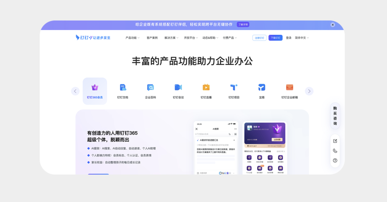 將圖標(biāo)與文字上下排版,搭配圓角矩形背景標(biāo)識(shí)選中狀態(tài),既能提升頁(yè)面豐富度,又能讓用戶(hù)快速識(shí)別功能。這種設(shè)計(jì)在工具類(lèi)、辦公類(lèi)產(chǎn)品中尤為適用,比如釘釘?shù)墓δ軜?biāo)簽頁(yè),用簡(jiǎn)潔圖標(biāo)搭配 “釘釘文檔”“企業(yè)會(huì)議” 等文字,既清晰傳達(dá)功能,又讓界面更具設(shè)計(jì)感,降低用戶(hù)認(rèn)知成本。