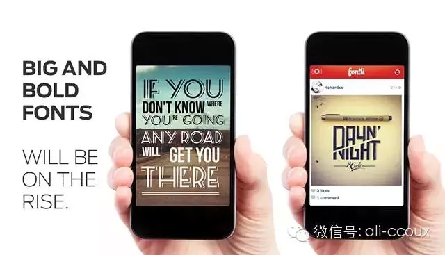 隨著滾動式瀏覽方式的普及,以內(nèi)容為核心的設(shè)計思路,在界面設(shè)計上會愈加明顯,沒有過多修飾的排版結(jié)構(gòu),不再盲目追求將很多內(nèi)容擠在一屏以內(nèi),反之是加大間距和行高,讓用戶的閱讀更加聚焦,享受到沉浸式體驗(yàn)。大屏手機(jī)的流行,也促進(jìn)了大字體在移動端APP上流行的節(jié)奏,大字體會賦予界面以層次,提高特定元素的視覺重量,讓用戶難以忘懷。字體夠大、夠優(yōu)雅、夠獨(dú)特、夠貼合,也就能提升頁面的氣質(zhì)和特色,而這正是移動端APP設(shè)計的另外一次重要的機(jī)會。