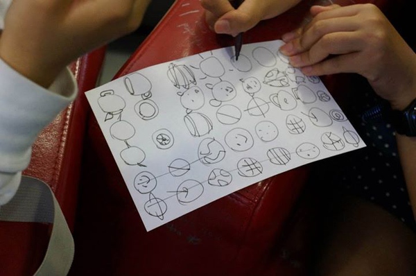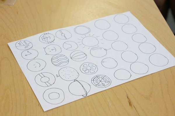 (這是在做頭腦風暴前的小練習,畫30個圓圈,然后盡可能地把每一個圓圈都賦予一個意義,變成不同的物件,這個聯(lián)系在很多關于頭腦風暴的工作坊里都有,Photo by Tatsuhiro Ohtani,VIA同事)