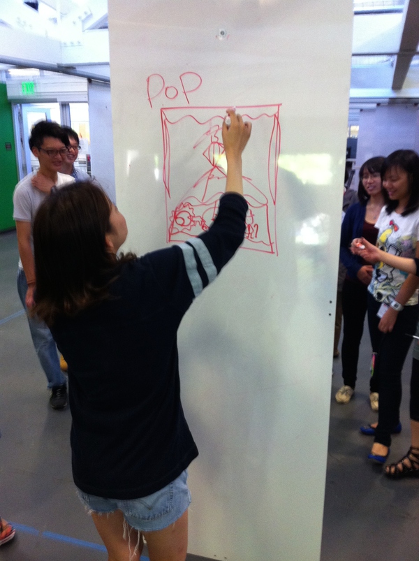 除了具體的步驟和視覺化思考,Design Thinking所倡導的社會化思考是一種設計態(tài)度,思維,和與人溝通的方法。所以貫穿在這五步里面,我們做了大量的Improv Game(即興游戲),去改變學生的思維方式,讓學生更懂得如何在團隊里與人合作(因為IDEO本身就是很注重團隊精神的)以下列舉幾個有意思的: