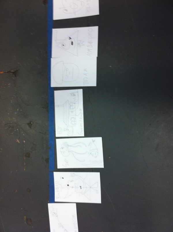 (然后是升級版,所有人一個,一人一筆去創(chuàng)造一個人物,還要給它命名。這個很有意思,因為會得到完全意料不到的結果,而越到后面卻越有默契,能“感應”得到大家都在往一個方向走,最后起的名字似乎就都是大家所希望的)