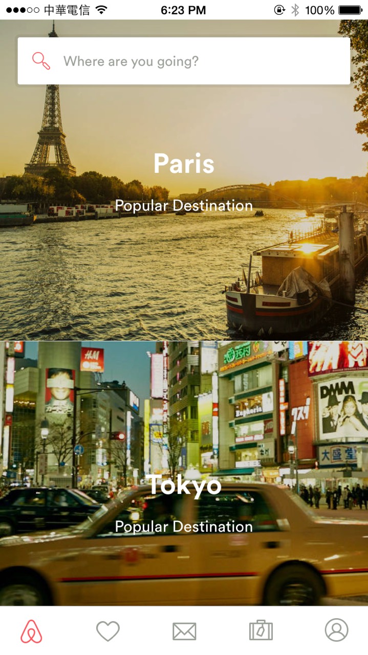 首先,品牌行銷必須要更加微型,例如:Airbnb 的品牌 Logo 就以一個(gè)不張揚(yáng)的方式嵌在應(yīng)用內(nèi)。這是因?yàn)榇蠹視?huì)來使用你的 App,就已經(jīng)知道你的品牌,因此沒必要讓品牌 Logo 重複出現(xiàn)在螢?zāi)恢小?