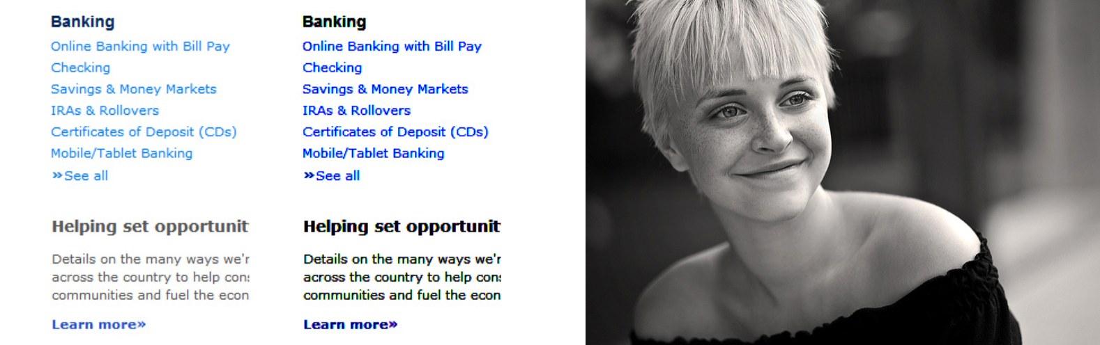 當(dāng)一個(gè)頁(yè)面必須呈現(xiàn)大段不可刪除的文字、圖片時(shí),保證可讀性是一大難題,這時(shí)我們就需要相機(jī)行事、變相留白,在色彩傾向上調(diào)整,拉開明暗對(duì)比,比如說讓大片圍繞標(biāo)題文字顏色變灰變淺,是凸顯標(biāo)題的有效辦法。