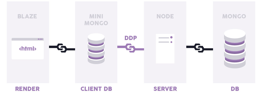 此外,Meteor特別適合于那些想要構(gòu)建實時web app的開發(fā)人員。所有從數(shù)據(jù)庫到模板的app層都會自動更新。這是它的工作原理——