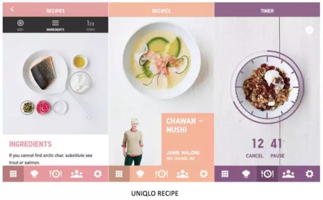 優(yōu)衣庫出品的RECIPE,是一個讓人眼前一亮的設計案例,多彩色的設計風格融入到整個APP中,不論是切換標簽頁,還是在內(nèi)容組塊中滾動,都會變更不同的主題色。色彩切換的時候,還會有淡入淡出的效果,讓切換變得自然而然,完全不生硬。