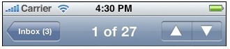 在iPhone 平臺上,如果應(yīng)用程序有信息層級關(guān)系(比如郵箱> 收件箱> 郵件),利用title 進(jìn)行導(dǎo)航, 導(dǎo)航欄左側(cè)始終是返回按鈕,右側(cè)如果有必要,可以放針對內(nèi)容的操作控件,中間有標(biāo)題。