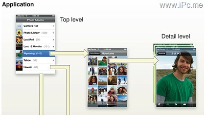 iPhone 典型應(yīng)用的界面結(jié)構(gòu)很穩(wěn)定,導(dǎo)航欄和頁簽欄的位置不會因?yàn)閼?yīng)用不同而發(fā)生變化,用戶能形成比較一致的體驗(yàn)。