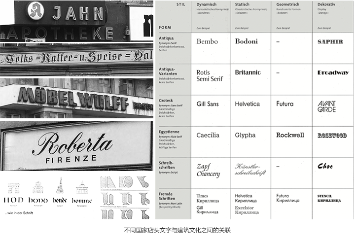 如在不同文化背景的國家,店面門口招牌字設(shè)計的不同,以及它與建筑文化之間的關(guān)聯(lián);