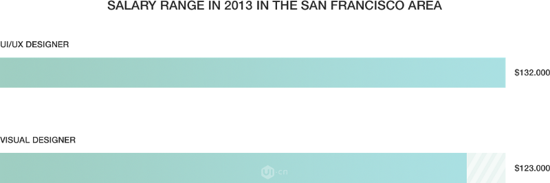 市場本身就是多學科性的。由Dashburst的圖表得出,擁有至少兩種技能的人,例如UI/UX設計或者UI/前端開發(fā),會得到比UI(視覺)設計師每年多10k的薪水。