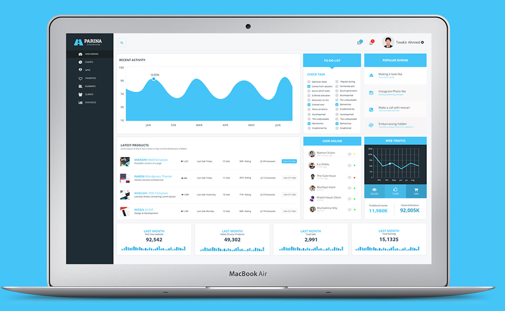 后臺管理軟件界面設計一:藍色經(jīng)典的扁平風格。