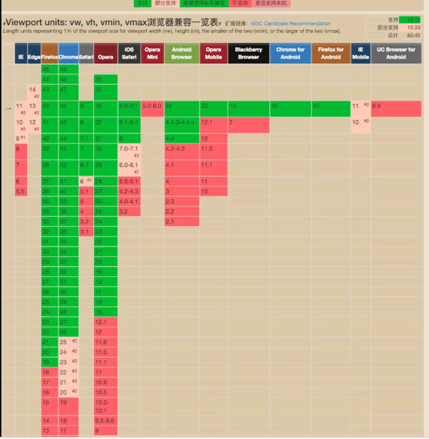 vw這個vw的方案,相當(dāng)而言還比較新。vw 即(viewport width)可視窗口的寬度。之所以把這個方案放在后面來說,是因為viewport在去年(2017年)的時候存在不少的兼容性問題,各個瀏覽器的支持并不是很好。但是來到了2018年這個時間點,viewport單位意見得到了眾多瀏覽器的支持(80.45%)。