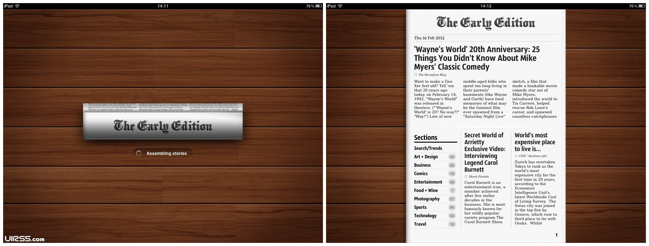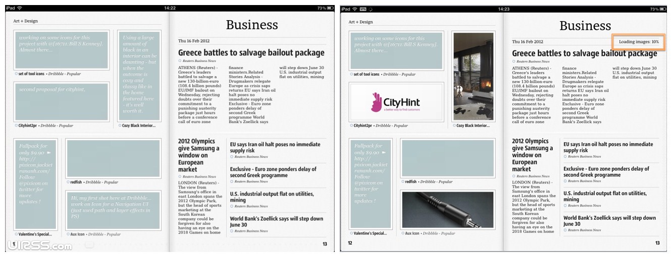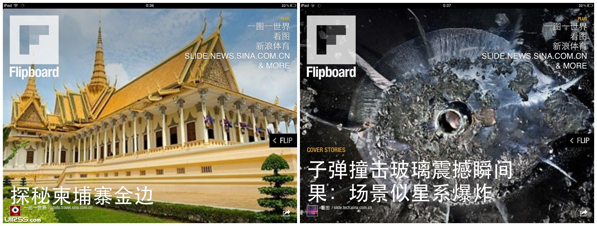 如Flipboard打開應用時,cover從舊版的固定圖片變?yōu)槟阌嗛唭热莸膱D片,在第一時間建立起閱讀內容和用戶的聯(lián)系,在等待過程的同時閱覽正在更新的信息。