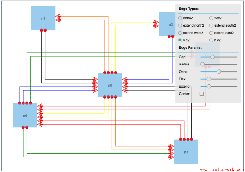 對于連線 Edge,HT 還提供了自定義走向的擴(kuò)展機(jī)制,并提供了相應(yīng)的預(yù)制擴(kuò)展連線類型插件,參見《HT for Web 連線類型手冊》http://www.hightopo.com/guide...