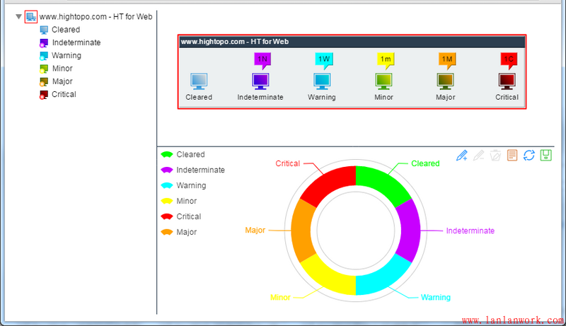 當(dāng)然你也可以把 HT 與 百度 ECharts 進(jìn)行整合,只要是 HTML 圖形組件就可以整合到 HT 的布局容器中,可參考《ECharts整合HT for Web的網(wǎng)絡(luò)拓?fù)鋱D應(yīng)用》,此例子將 ECharts 整合 HT 拓?fù)鋱D做了告警統(tǒng)計的圖表呈現(xiàn)效果: