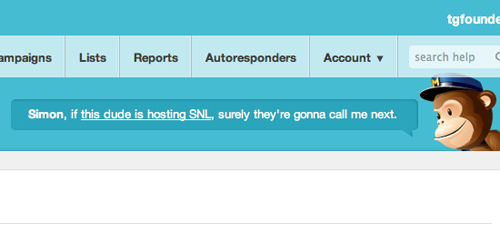 MailChimp 在情感化設(shè)計(jì)方面的一個特色之處就是他家的吉祥物,猩猩Freddie。這家伙會在你的個人資料頁打開之后為你歡呼,而且每次刷新頁面之后都會冒出一些隨機(jī)的笑話或鏈接。