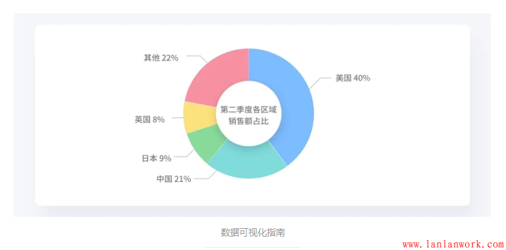 除餅圖外,環(huán)形圖(甜甜圈圖)亦可表示占比,其差異是將餅圖的中間區(qū)域挖空,在空心區(qū)域顯示文本信息,比如標(biāo)題,優(yōu)勢(shì)是其「空間利用率更高」。