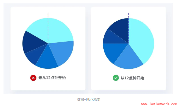 人們的閱讀習(xí)慣往往是從12點(diǎn)鐘開始的(跟表盤類似)。所以我們?cè)谥谱黠瀳D時(shí)也要遵循觀眾的閱讀習(xí)慣,從12點(diǎn)鐘方向開始制作,這樣才能呈現(xiàn)出更加清晰的數(shù)據(jù)。