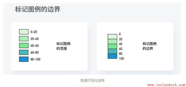 在需要用多種顏色做區(qū)分的圖表中,有時(shí)可以通過標(biāo)記圖例邊界而不是標(biāo)記圖例范圍的方式,來提高觀眾的閱讀效率。