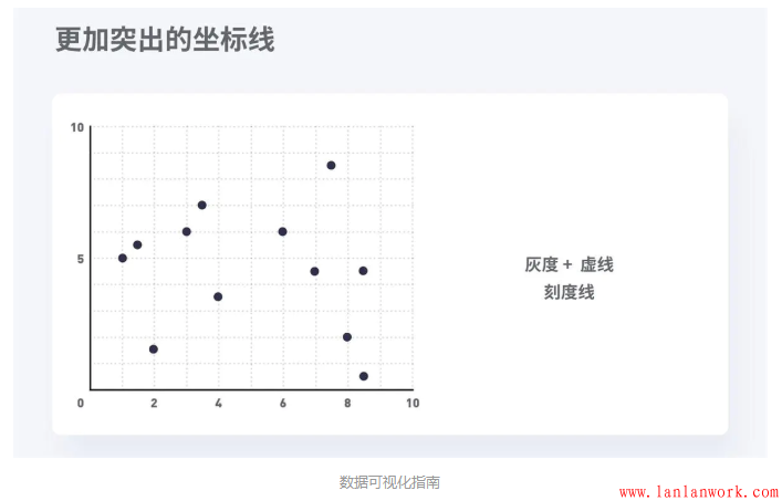 如果確定要使用刻度線,則需要使它們比作為實(shí)際數(shù)據(jù)的點(diǎn)或者線條要層級(jí)低。因?yàn)檫@些刻度線也屬于背景的一部分。