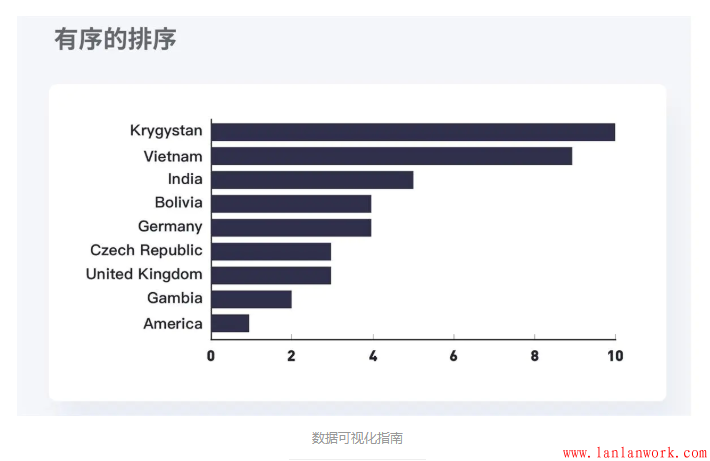 這個(gè)規(guī)則與其他的數(shù)據(jù)圖表一致,我們?cè)谀玫綌?shù)據(jù)后,不要急于去進(jìn)行數(shù)據(jù)可視化,而是應(yīng)該對(duì)數(shù)據(jù)進(jìn)行排序處理,一般來講,我們對(duì)于圖表都要進(jìn)行從大到小的數(shù)據(jù)排序,才更有利于我們展示數(shù)據(jù),但是有一個(gè)例外的情況。