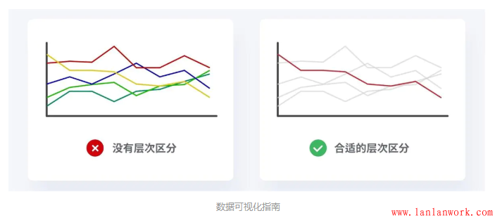 當(dāng)我們?cè)谥谱饕粋€(gè)復(fù)雜的折線圖時(shí),我們想要顯示其中的一條數(shù)據(jù),最好的方法就是加強(qiáng)它與其他元素的對(duì)比,從而提高它的重要性層級(jí)。