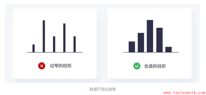 過寬的柱會(huì)讓圖表看起來笨重,盡量保持柱的輕薄,這樣可以保持優(yōu)雅的外觀,但是太薄了會(huì)讓用戶很難對(duì)數(shù)據(jù)進(jìn)行比較。