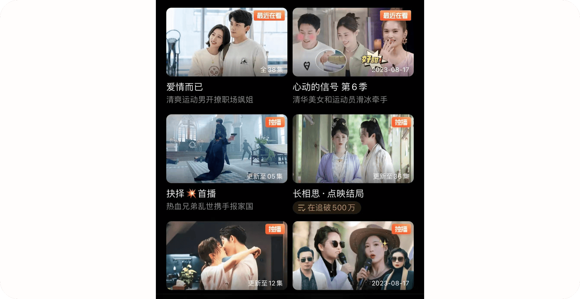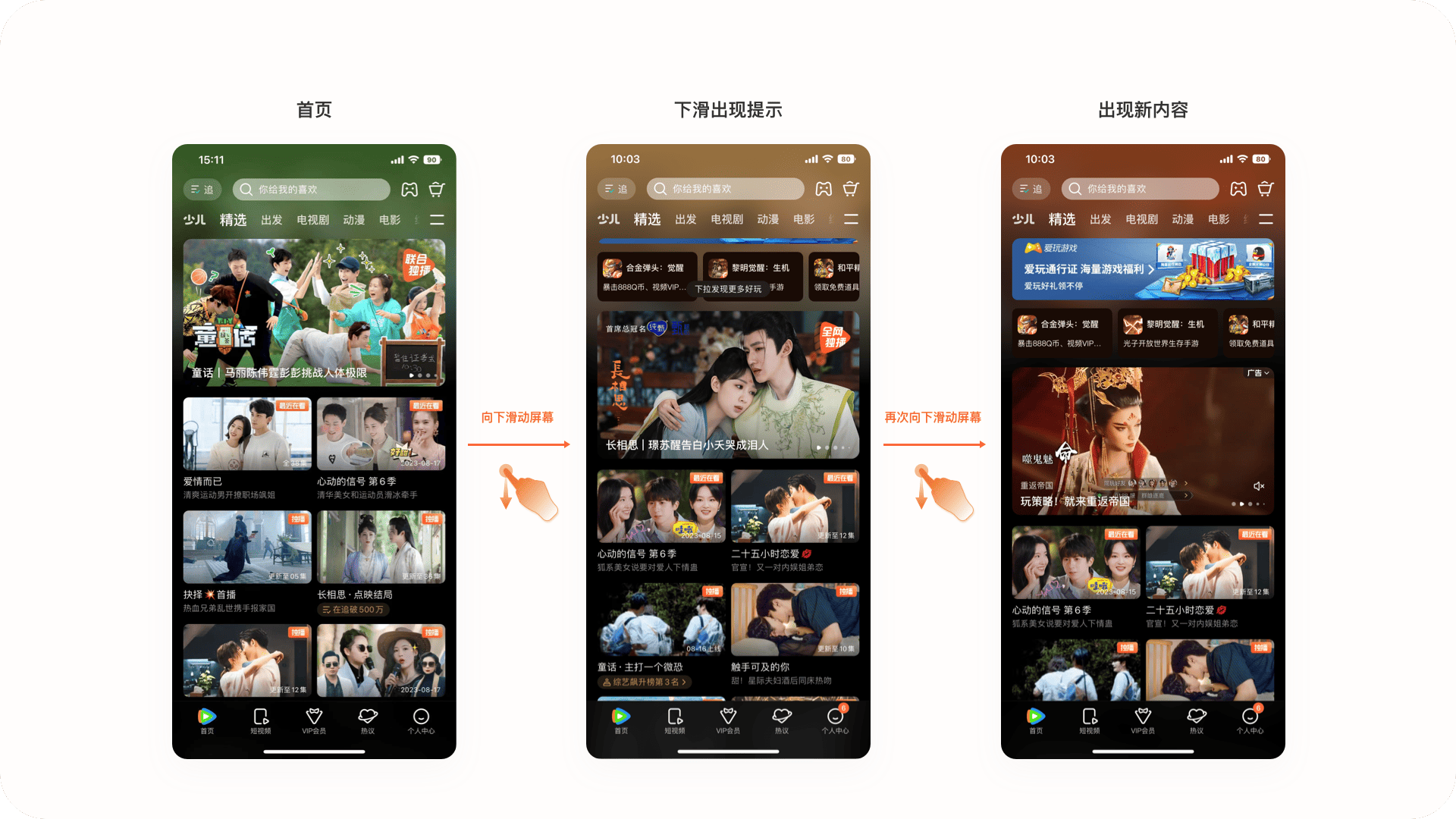 聆聽音樂時,用戶經(jīng)常會有興趣了解更多該音樂的視覺信息,如觀看該歌曲的MV、演唱會Live片段、使用該音樂的影視和綜藝...近年短視頻的流行讓用戶熟悉了用“刷”的手勢展開更多內(nèi)容,QQ音樂運(yùn)用該思路乘載音樂和相關(guān)視頻的切換入口。當(dāng)用戶享受音樂時,向上“刷”就會進(jìn)入MV等更強(qiáng)烈的視覺內(nèi)容,并且可持續(xù)“刷”觀看更多相關(guān)視頻。該設(shè)計不但幫助用戶從純聽覺過渡到強(qiáng)烈的沉浸氛圍,也讓歌曲相關(guān)的視頻、影視作品得到更多曝光和關(guān)注,利于音樂創(chuàng)作生態(tài)的發(fā)展。