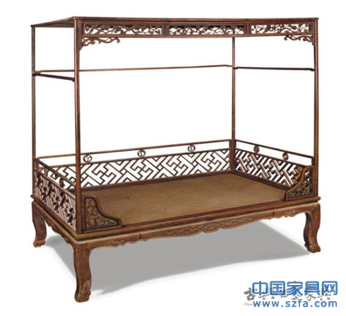 拍品詳情:明代架子床的制作技藝具有嚴(yán)謹(jǐn)有序、精益求精的特點。其設(shè)計追求造型簡約、功能合理,帶有明顯的文人氣質(zhì)和獨特的建筑意味,好似玲瓏屋。此海南黃花梨料架子床,色澤沉靜。四角立圓柱,與承塵長短榫相交,承塵頂部直材交叉成田,且與大邊出榫相接。正面格肩裝橫棖,且用短材三分,裝絳環(huán)板,絳環(huán)板透雕梅花髯枝,各不相同,正是“絕訝梅花晚,爭來雪里窺”。下方裝透雕草龍紋掛牙。四根圓材直立角柱下端做榫拍合床座邊框四角上鑿的榫眼,為求其牢,安三羅鍋棖。床面三面做床圍,且做榫借入角柱,床圍上層為團龍紋卡子花,下層設(shè)萬字紋,兩面打洼,空靈有致,極為考究。正面兩端立弧形站牙,站牙鏤雕雙龍呈祥,飄逸靈動。這張床制作精細(xì),構(gòu)思巧妙,體現(xiàn)了明式家具既注重結(jié)構(gòu)的合理性又強調(diào)裝飾效果的特點。